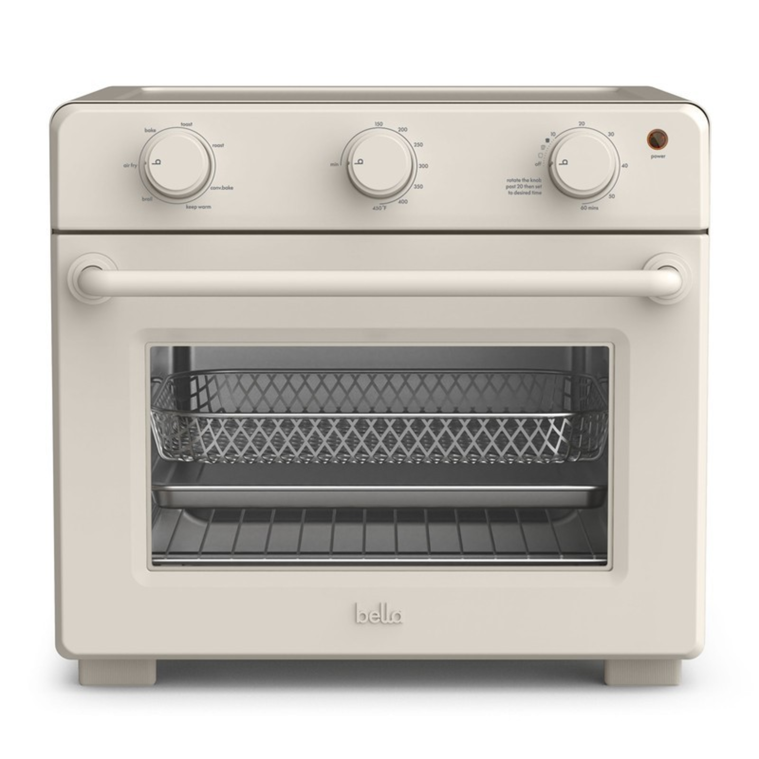 Elevate your countertop cooking (and feed the family) with the bella Air Fryer Toaster Oven. This all-in-one appliance has 7 cooking functions and a tempered glass pull-down door with cool-touch handle for ease of use. Includes: Wire rack, bake pan, air fry mesh basket, and removable crumb tray. Generous sized toaster oven holds up to 6 slices and fits a 12inch pizza. 7 functions include air fry, bake, toast, roast, broil, keep warm and convection bake. 1700 watt heating system ranges from warm to 450F for quick and even cooking. 60-minute timer with convenient auto shut off. Power indicator light lets you know the unit is on. Intuitive, easy to use control panel. Tempered glass pull-down door with cool touch handle for added safety. Easy to clean dishwasher safe parts. No more tangled mess–cord neatly tucks away. Modern details like rounded corners, soft matte finish and subtle fluting. Includes: Wire rack, bake pan, air fry mesh basket, and removable crumb tray