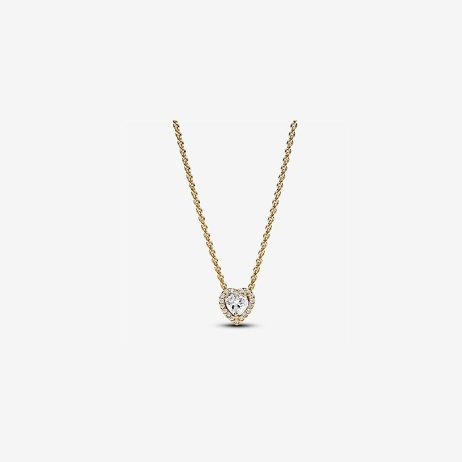 Make a statement with the Sparkling Heart Collier Necklace. This 14k gold-plated necklace is inspired by classic design elements from the Pandora Timeless collection. Featuring a raised heart-shaped central stone surrounded by a halo of clear cubic zirconia, the necklace also has a rectangular tag near the clasp with an engraved Pandora logo. Adjust the necklace length to suit your style and wear with other heart-shaped pieces for a look filled with love.